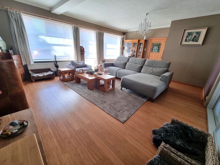 De woonst is instapklaar en biedt een inkomhal met ingemaakte vestiaire kast en vernieuwd gastentoilet. Gezellige woonkamer met houten vloerbekleding, eethoek met zicht op de tuin met aansluitend keuken.