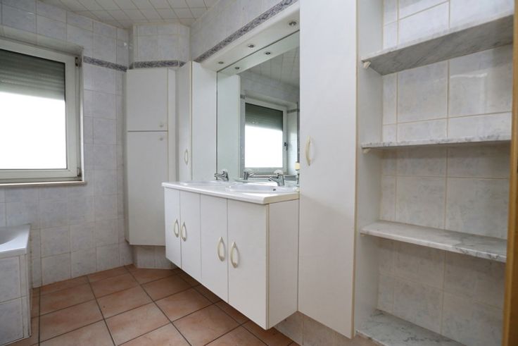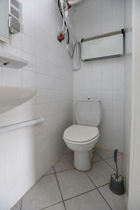 Op het gelijkvloers is er een fietsberging voorzien en onder de trap hangen de elektriciteitsmeters voor elke studio en appartement een dag en nacht meter plus een exclusieve nachtmeter voor de accumulatieverwarming.