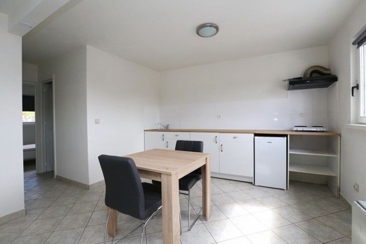 De studio's hebben een aparte ingang aan de zijkant, via de trappenhal kom je op het eerste en tweede verdiep die telkens 4 studio's bevatten met 1 slaapkamer, op het derde verdiep zijn er 2 kleine appartementen met 2 slaapkamers. Alle studio's en appartementen hebben een woonruimte met keuken, badkamer en slaapkamer(s).