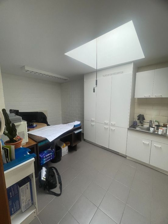 Dit ruime kantoor is gelegen op het gelijkvloers en biedt plaats aan vier ruime aparte bureauruimtes. Verder is er nog een ruime inkom die plaats biedt voor een wachtruimte, een ruime bijkeuken waar de collega's samen kunnen zitten en een archiefruimte.