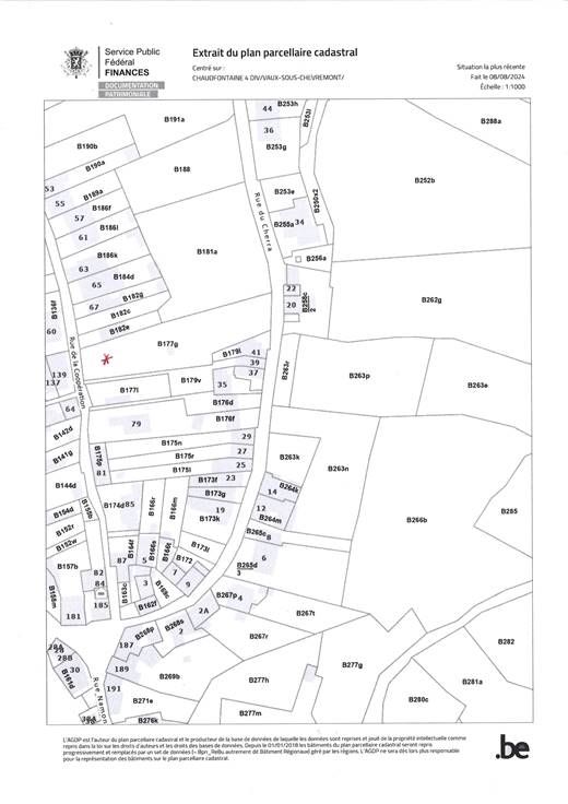 Vaux s/Chèvremont: Terrain plat à bâtir de, d'après cadastre, 1218m² donnant sur deux rues; rue de la coopération (à côté du 67) et rue cherra avec respectivement une largeur de façade approximative de 11m et 13m.