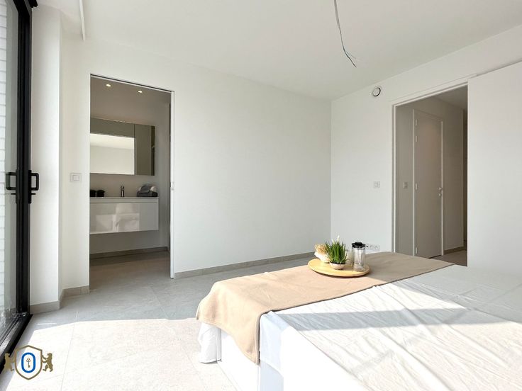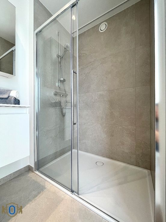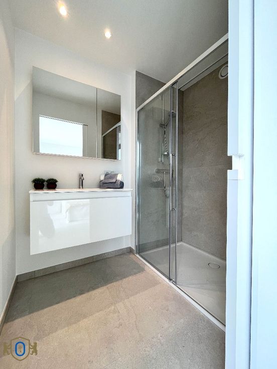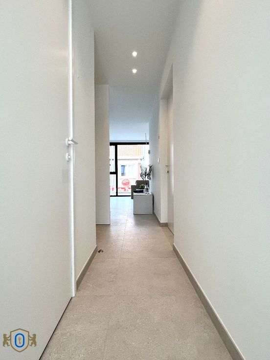 *** VERHUURD *** (Dossier in afhandeling) VISUEEL ATTRACTIEF woongeheel met een sterk doorgedreven zin voor hoogwaardige afwerking en energiezuinigheid. Het appartement heeft een zeer praktisch ingedeeld woonoppervlak en beschikt over een bijhorend zuidgericht terras (11 m2). Gelegen pal in het centrum, vlak bij de markt, winkels en openbaar vervoer. De geslaagde combinatie van enorme lichtrijkheid als doorzonappartement met een open woonconcept vormen een SOLIDE WOONCOMFORT. Oa vloerverwarming, herbruik regenwater toiletten, gemeenschappelijke waterontharder, toegangscontrolesysteem (Salto Homelok), superisolerende beglazing, ... Lichtarmaturen en rails voor gordijnen worden nog voorzien. Het woongedeelte verdeelt zich in : * Inkomhal met gastentoilet & vestiaire * Leefruimte met aanpalende open woonkeuken (Inductiekookplaat - vaatwas - oven & microgolf, frigo & diepvries) met veel opbergkasten en schuiflades * Berging / wasplaats * Slaapkamer met toegang tot zuidgericht terras (11 m2) * Badkamer (wastafel / douche) Tevens is er een private gelijkvloerse berging B3 inbegrepen. Een gemeenschappelijk overdekte fietsstalling is voorzien en een collectieve berging voor het vuilnis. Garagebox nr 3 (elektrische poort / verlichting / stopcontact / voorziening voor optie elektrisch laden) dient bijgehuurd te worden aan 90 EURO/maand. EXTRA TROEVEN : Energiezuinig / Volledig geschilderd / Zuidgericht terras / Nieuw ... Vaste kosten 60 euro/maand.