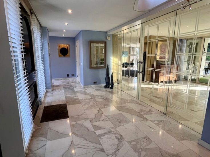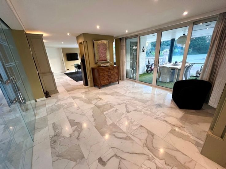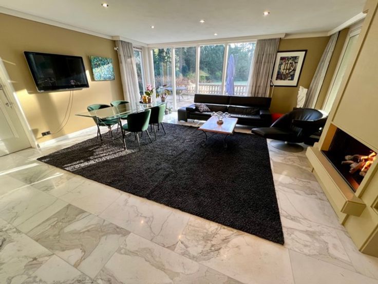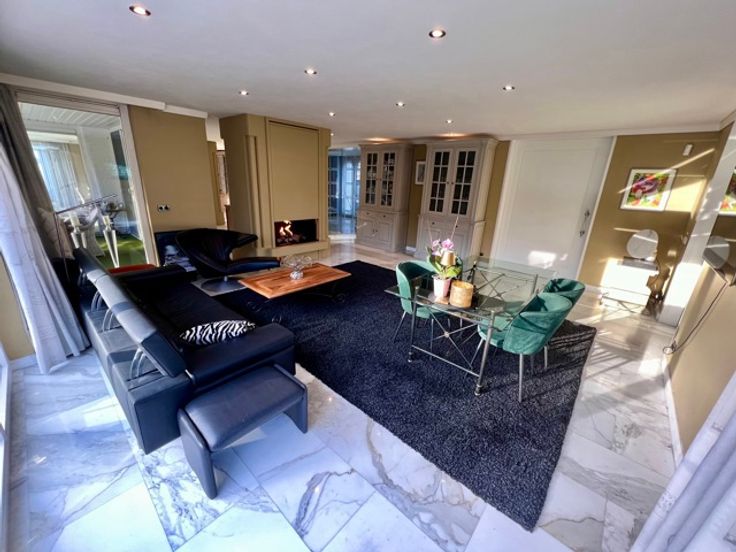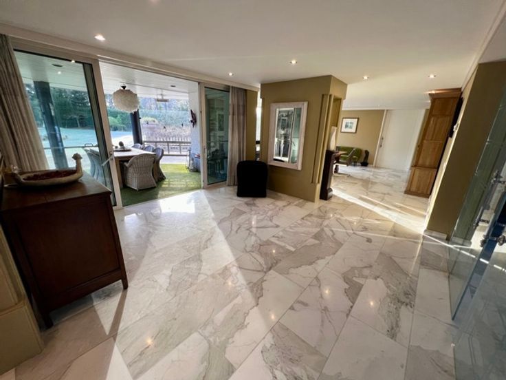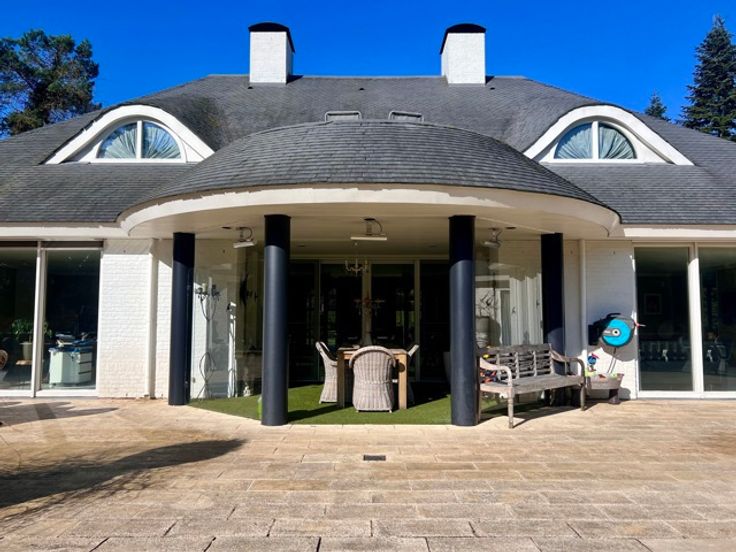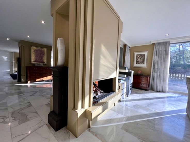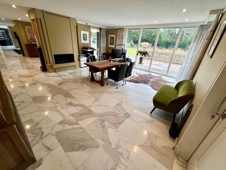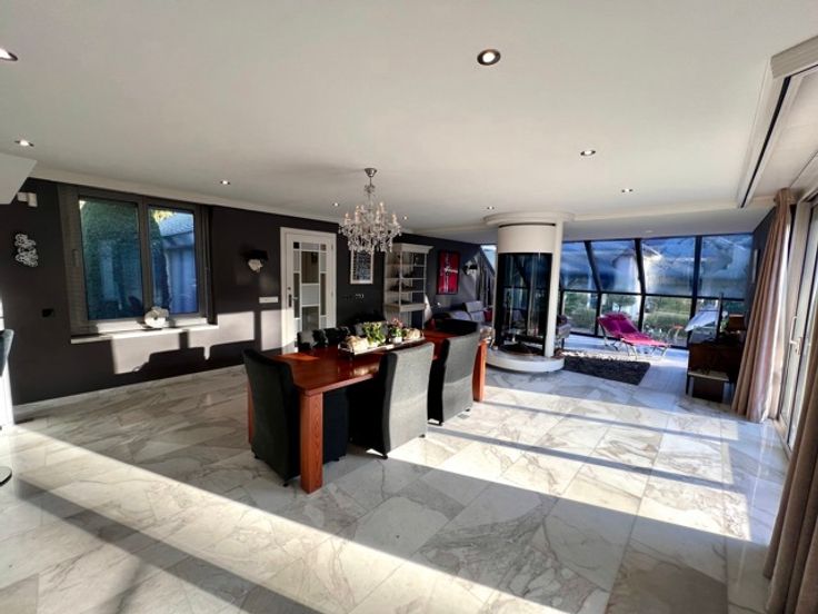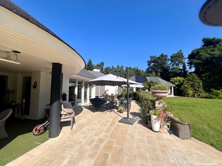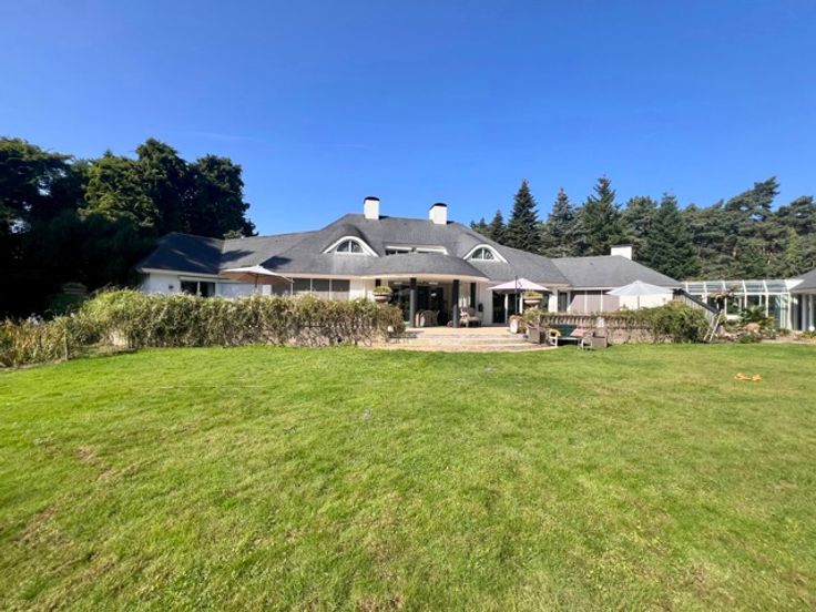 Indrukwekkend landgoed met torentje (ca 865 m² ) in gegeerde villawijk "De Grote Heide" vlakbij de NL grens op 9.212 m², palend aan een natuurgebied. Achter de poorten merk je de contouren op van een grootse villa. Alles start bij de marmeren inkomhal met vestiaire, gastentoilet en in de toren een trap. Er is een ontvangstkamer die zicht geeft op de verwarmde loggia en de prachtige parktuin met vijverpartij. Er is een groot bureel met openhaard (50 m²). Er is nog een woonkamer (ca 100 m2) met royale bar en glazen open haard. In de uitgeruste en luxe leefkeuken van Bulthaup is het echt genieten, vooral met de aanpalende eetkamer met OH. Verder een bergkamer, waskamer, gang met extra toilet, koelkamer, bergingen en een dubbele inpandige garage. Wauw zwembadgebouw met een zwembad 5 x 15 m, prachtige zuilen met whirlpool, Turks stoombad, sauna, inloopdouche, wc, kleedkamer en loggia. Verder is er nog een kinderkamer, mastersuite met dressing en marmeren badkamer. Boven: overloop dakterras en toilet, 2 gastenkamers met telkens dressing en marmeren badkamer. - Vloerverwarming - el. screens-rolluiken - camerasysteem - alarm -geboorde waterputten met autom. beregening - bergzolders EPC 164 KWh/m² - Label B (o.a. zonnepanelen en warmtepompboiler) Infoplicht: Vg, Pg (gelegen in parkgebied) Gmo, Gvkr, vv, P-score: A ,  G-score: A - geen asbest! Dit is geen aanbod, alle informatie is steeds onder voorbehoud van materiële vergissingen en/of wijzigingen.