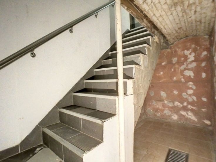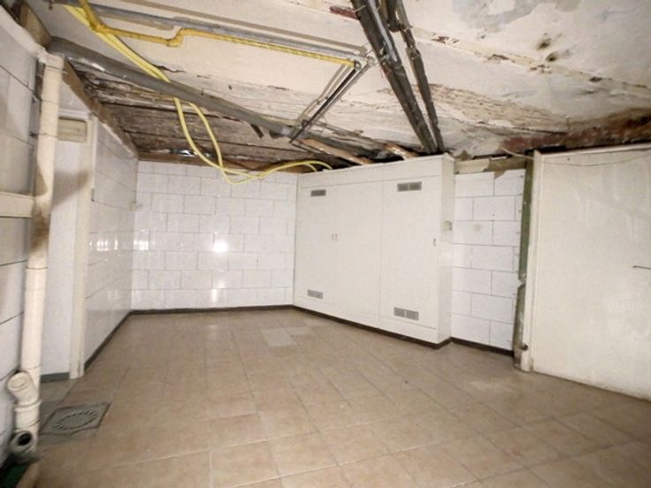 Het pand biedt een grote woonkamer, met 1 aangrenzende kamer, een trap die toegang geeft tot 2 kamers, inclusief balies en toilet.