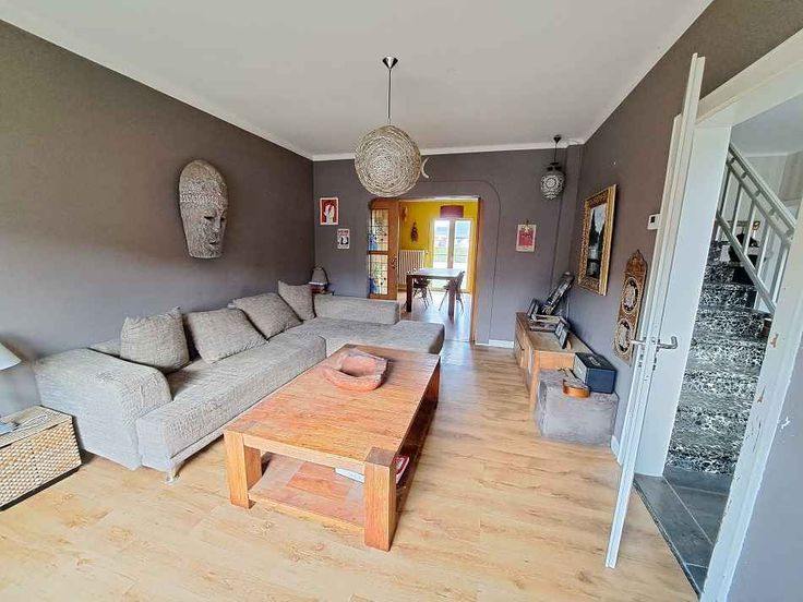 La maison est composée comme suit : Salon, salle à manger, cuisine équipée, 3 chambres (possibilité chambre supplémentaire), 1 salle de bain avec douche et WC, 1 WC séparé, caves, garage, jardin...