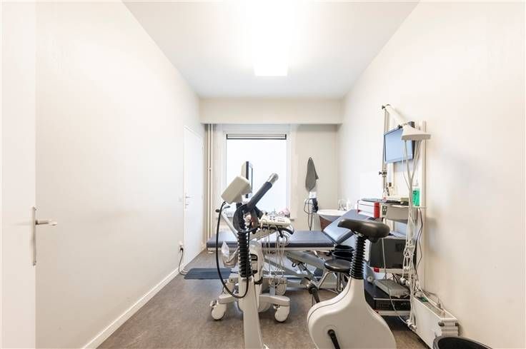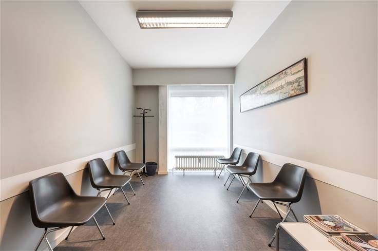U betreedt het kantoor via de aparte inkomhal aan de zijkant van het gebouw. Direct links vindt u de wachtzaal. Naast de wachtzaal ligt de eerste praktijk-/kantoorruimte. Halverwege de gang vindt u nog 2 even grote praktijk-/kantoorruimtes met daar tegenover het toilet en een ruime berging. Achteraan ligt de grootste praktijk-/kantoorruimte.