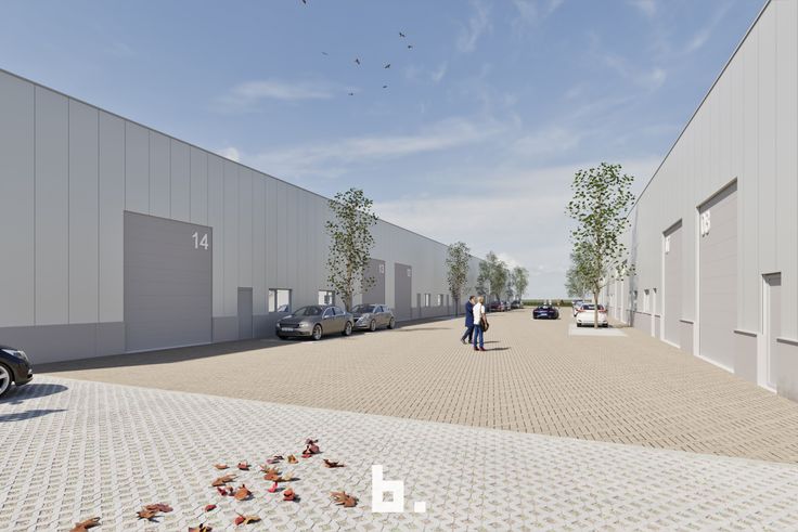 Brugsesteenweg- Steenovenstraat, 14 KMO units met oppervlaktes tussen de 320m² en de 440m², de daken blijven eigendom van de bouwheer en worden voorzien van zonnepanelen + 6 parkeerplaatsen met laadpalen.