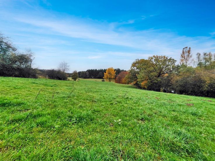 Mooi en rustig gelegen bouwgrond van 1341m² op een boogscheut van Achouffe en aan de rand van het woud Bois St. Jean (= 600h² bos) met een straatbreedte van 25m. Tal van wandelingen in de onmiddelijke omgeving. Bouwvergunning alsook plannen worden inclusief aangeboden (zonder verplichting). Buitenkans !