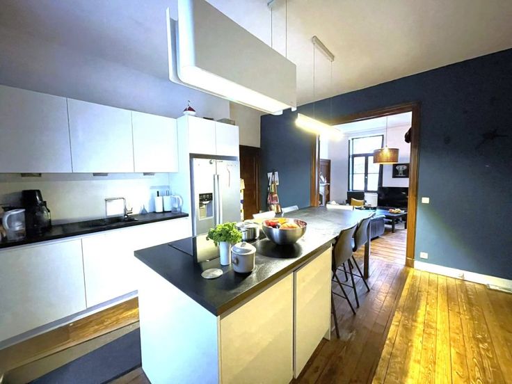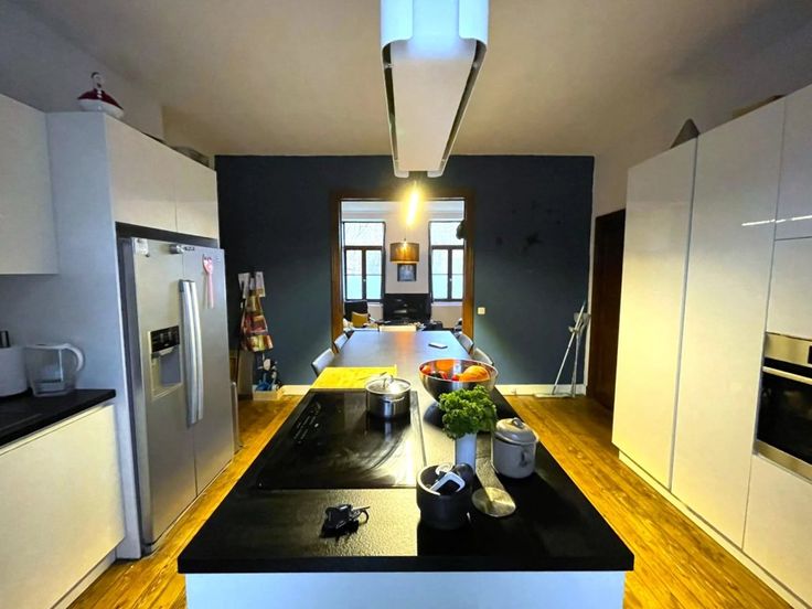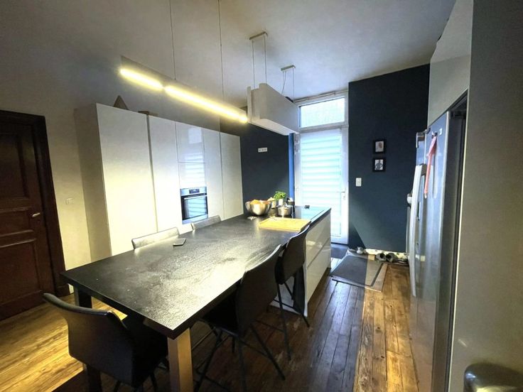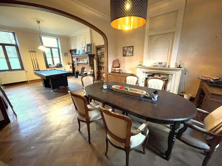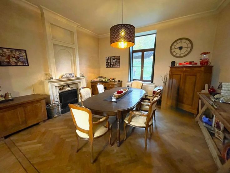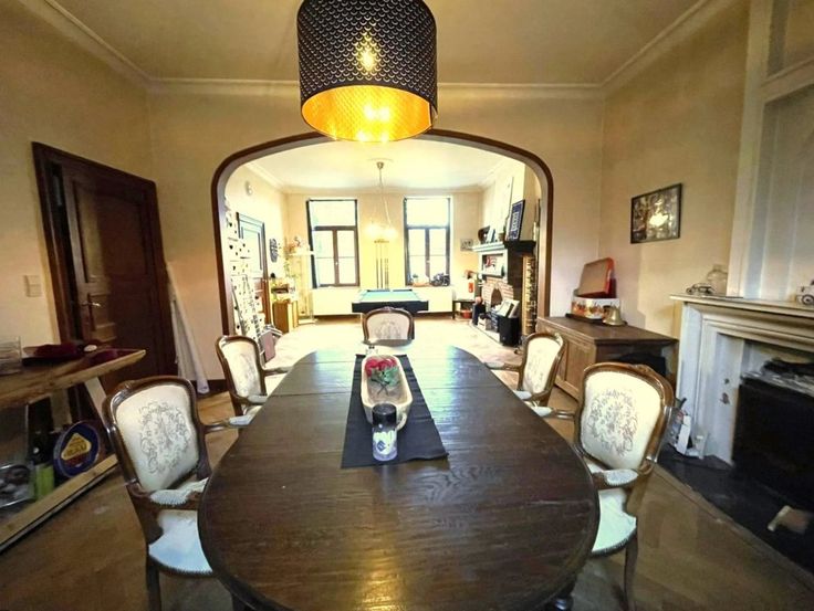 Option! Option! Offre à partir de 369.000 € (sous réserve d’acceptation de propriétaires). Charmante villa de caractère 4 façades (+/- 300 m²) qui vous séduira par ses volumes et ses matériaux d’époque, son portail et son joli jardin. Située proche des commodités, elle est idéale pour une famille nombreuse ou profession libérale. Cette maison se compose comme suit : Sous-sol : caves. Rez-de-chaussée : Hall d’entrée, salon, cuisine américaine (frigo, congélateur, four, taque vitro, hotte, lave-vaisselle), spacieux séjour, salle de bains (douche italienne, baignoire, double lavabo, w.c.) annexes attenantes au bâtiment principal avec entrées indépendantes et actuellement aménagées en buanderie et bureaux, jardin, terrasse et garage, 1 er : Hal l de nuit, 4 chambres (22, 22, 22, 22 m²) avec placards intégrés, salle de bains. 2ème : spacieux grenier aménageable en plusieurs chambres (4) Châssis double vitrage bois avec volets intérieure, chauffage central mazout, 16 panneaux photovoltaïques, feux à bois. R.C. : 1300 €, superficie totale terrain 1.419 m². PEB: G , E spéc: 1148 kWh/m².an, E totale: 166.578kWh/an, n° 20230902008939. Agréable situation.