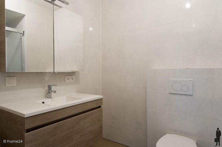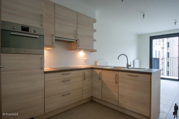 Mooie leefruimte op tegel met half-open keuken voorzien van alle nodige luxe (inductie-kookplaat, vaatwasser, ijskast met vriesvak, combi-oven). Vanuit de leefruimte krijgt u toegang tot het ruime terras (6.9 m²).