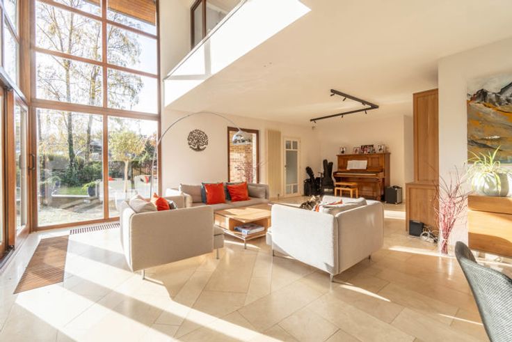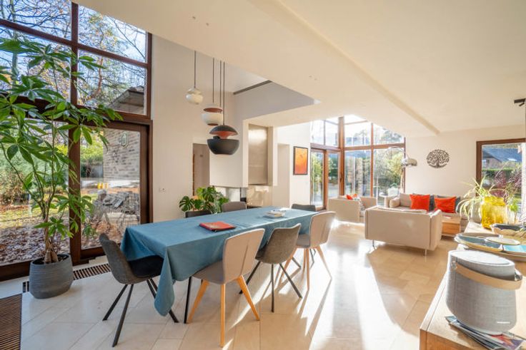 *** OPTION *** Idéalement située dans un clos résidentiel calme et verdoyant, proche de toutes les facilités, venez découvrir cette superbe et très lumineuse villa de 245m² habitables. Implantée sur un très beau terrain plat et privatif de 15a 40ca parfaitement orienté, elle se compose au rez-de-chaussée d'un hall d’entrée avec vestiaire et toilette visiteurs, superbe séjour de 75m² avec feu ouvert centralisé (salon- salle-à-manger et salon télé), une cuisine (28,70m²) super-équipée avec seconde salle-à-manger attenante, bureau (19,27m²) et buanderie (avec lavabo et douche). A l'étage, hall de nuit avec toilette indépendante, une suite parentale de 21,65m² (chambre, dressing et salle de bain), 3 autres chambres, une salle de bain et une salle de douche. DIVERS: PEB.: D, construction traditionnelle (1992), caves de rangement, grenier de rangement, châssis en bois double vitrage partout, chauffage central au gaz, piscine extérieure avec pompe à chaleur, garage avec double porte sectionnelle télécommandée, plusieurs emplacements de parking à l’extérieur, terrasses parfaitement orientées, éclairage extérieur, adoucisseur d’eau, système d’alarme volumétrique,... A découvrir sans plus tarder! Situation, volumes et luminosité vous séduiront! Descriptif complet sur www.TRIOR.be