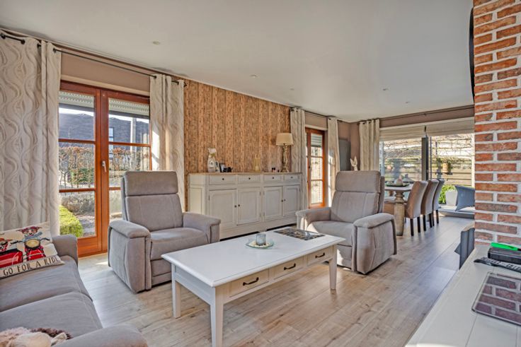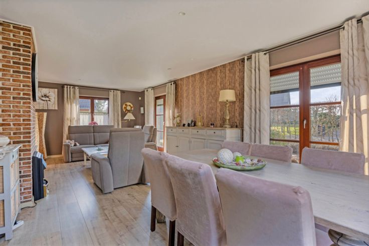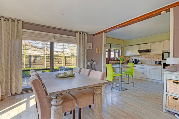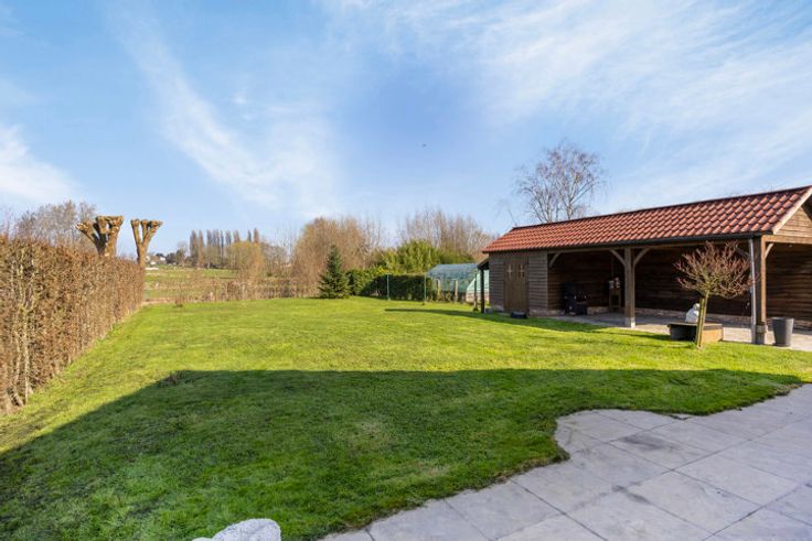 Welkom in deze prachtige bungalow gelegen in het schilderachtige Relegem. Deze woning biedt alles wat je nodig hebt te midden van de natuurlijke pracht van het platteland. Kom binnen via de aparte inkomhall met gastentoilet. De woonruimte baadt in het natuurlijke licht dankzij de raampartijen. De open keuken is volledig uitgerust en stelt je in staat in contact te blijven met je gasten of gezin in de woonkamer. De woning beschikt over drie comfortabele slaapkamers, ideaal voor gezinnen of gasten. De badkamer is voorzien van een moderne inloopdouche. Uitbreiden binnen het bestaande volume kan dankzij de ruime berging (14m2), die kan worden omgevormd tot een functie die voldoet aan jouw behoeften. Voorts is er nog de ruime zolder, die reeds over een onderdak beschikt en dus makkelijk en financieel voordelig langs de binnenkant verder geïsoleerd en afgewerkt kan worden. Buiten vind je niet één, maar drie terrassen waar je op verschillende momenten van de dag van de zon kunt genieten. De prachtige tuin biedt een panoramisch uitzicht op de velden, en dankzij de maairobot is het onderhoud een fluitje van een cent. Dankzij de zeer ruime oprit met poort kunnen kinderen en huisdieren veilig genieten van de buitenruimte en is er voldoende plaats om meerdere wagens te parkeren. Voorts is er ook nog een carport met bijkomende buitenberging. Mis deze unieke kans niet en contacteer ons voor een bezoek.