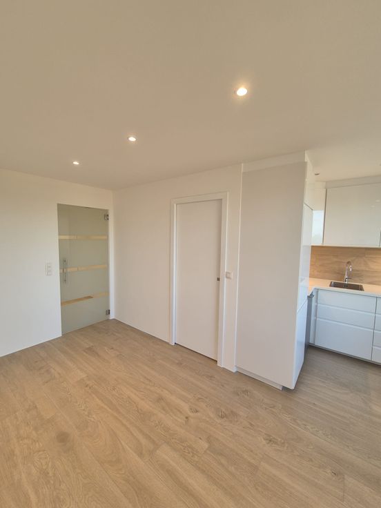 Dit gezellige nestje bestaat uit een hal met garderobe, een slaapkamer met een mooie schuifdeur die uitkomt op de woonkamer waar ook een slaapbank kan staan, ideaal voor een klein gezin of een last-minute gast 🥂