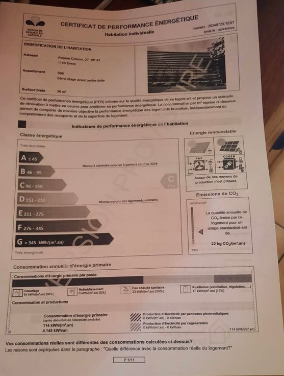 PEB cat C certificaat, veel lager dan andere woningen in het gebouw.