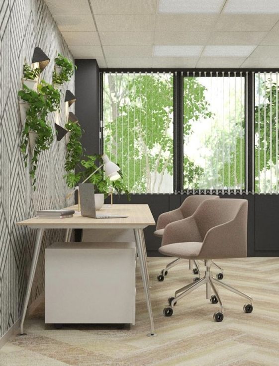 De kantoren hebben een natuur geïnspireerd design met groene muren, natuurhoeken, verstuivers van essentiële oliën etc. Deze stijl draagt bij aan motivatie en welzijn op het werk door stress te elimineren wat een positieve invloed heeft op onze gemoedstoestand.