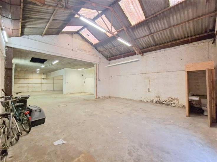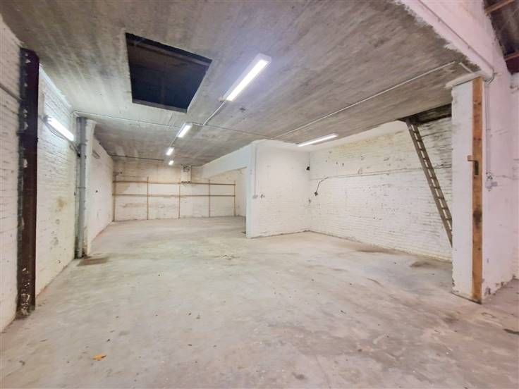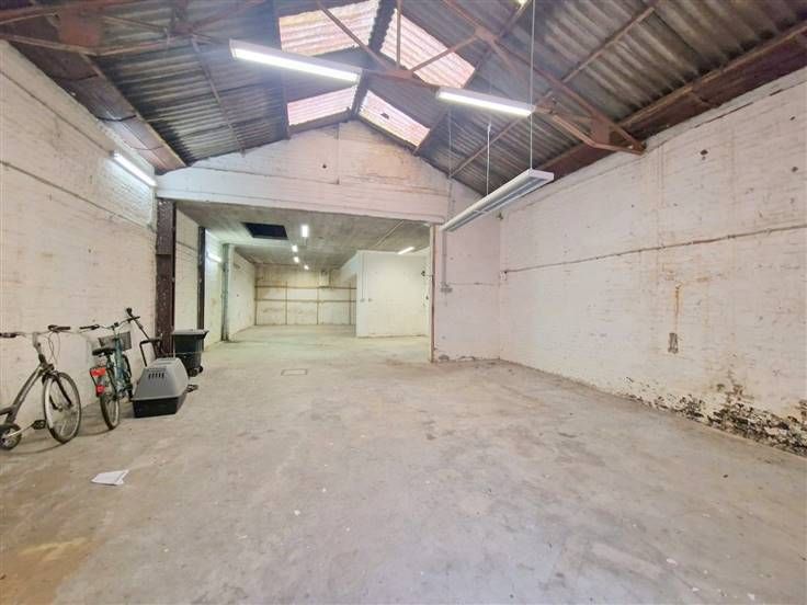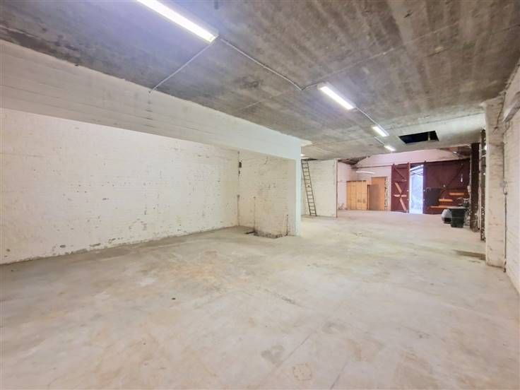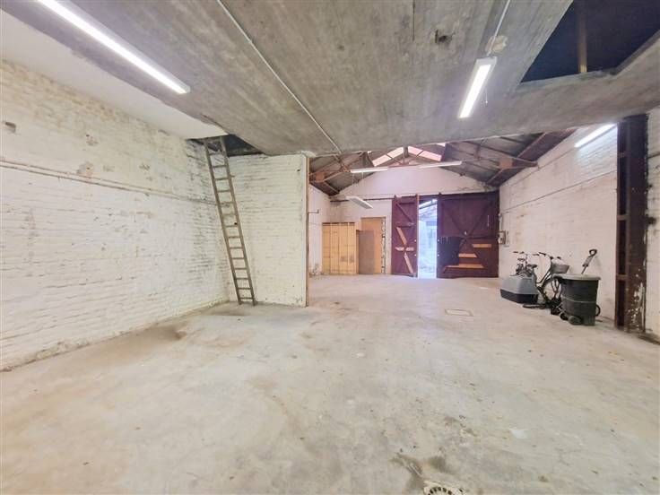 Entrepôt/dépôt d'une superficie totale de +/-150m² situé à l'arrière d'un petit immeuble SANS CHARGES COMMUNES et très facile d'accès via une allée principale partagée avec l'entrée de l'immeuble.