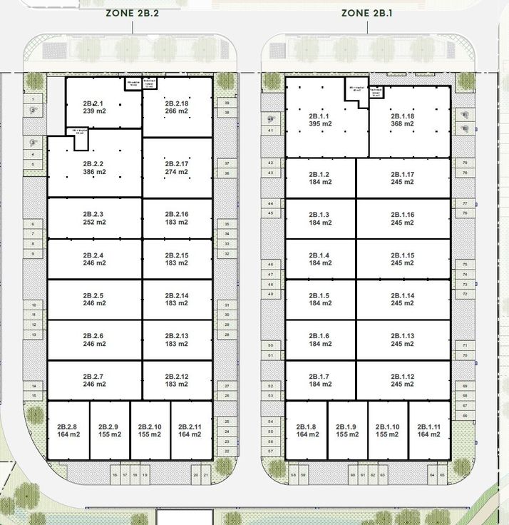 Deze unit van 395 m² heeft een kostprijs van 756.000 euro (excl. BTW). Deze prijs is inclusief de parkeerplaatsen en nutsaansluitingen.