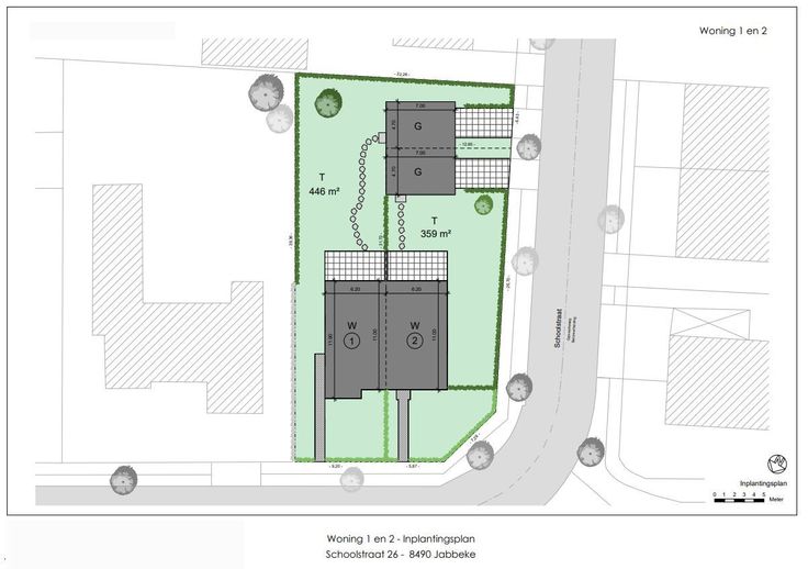 Dit prachtig hoekperceel heeft een volledige vergunning voor het bouwen van 2 koppelwoningen en bijhorende garages. Perfecte oriëntatie. Afbeelding gebaseerd op vergunde plannen.