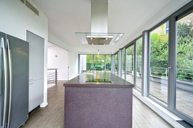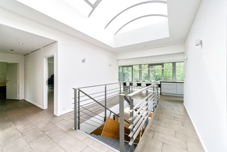 In een zeer aangename omgeving van de gemeente Ukkel, biedt dit uitzonderlijke gebouw uit 2009 met granieten gevels een unieke kans om er een sublieme villa van te maken, mits het verkrijgen van een vergunning voor bestemmingswijziging. Met een bebost perceel van 20,55 are biedt dit gebouw talloze mogelijkheden voor het creëren van een uitzonderlijke woning. Het gebouw, dat in perfecte staat verkeert, heeft een totale bruto vloeroppervlakte van ongeveer 915 m² verdeeld over drie verdiepingen. De grote, modulaire vloeren maken een breed scala aan configuraties mogelijk om aan je behoeften te voldoen. De beveiligde inpandige garage biedt plaats aan maximaal 6 auto's. Er is ook de mogelijkheid om een conciërgedienst te installeren, wat een extra vleugje luxe toevoegt aan dit unieke pand. Het gebouw heeft een EPB C+ certificaat en heeft 2,80 m hoge plafonds. Het is al volledig uitgerust met airconditioning, vloerverwarming, dubbele beglazing, uitstekende akoestische isolatie, netwerk- en internetbekabeling en een alarmsysteem. Met zijn uitzonderlijke kenmerken en grote perceel biedt dit gebouw een zeldzame kans om het te verbouwen tot een luxe, moderne villa in een groene omgeving. Dit pand is ideaal gelegen in Ukkel, op slechts een paar minuten lopen van het station van Stalle en het openbaar vervoer, en op slechts 5 minuten rijden van de Brusselse RO-ring, en ligt dus zowel dicht bij de voorzieningen als perfect aangesloten op de belangrijkste transportroutes.