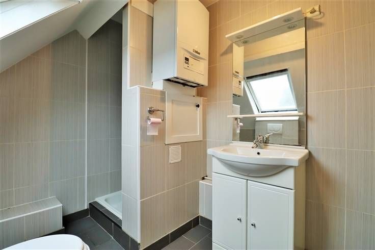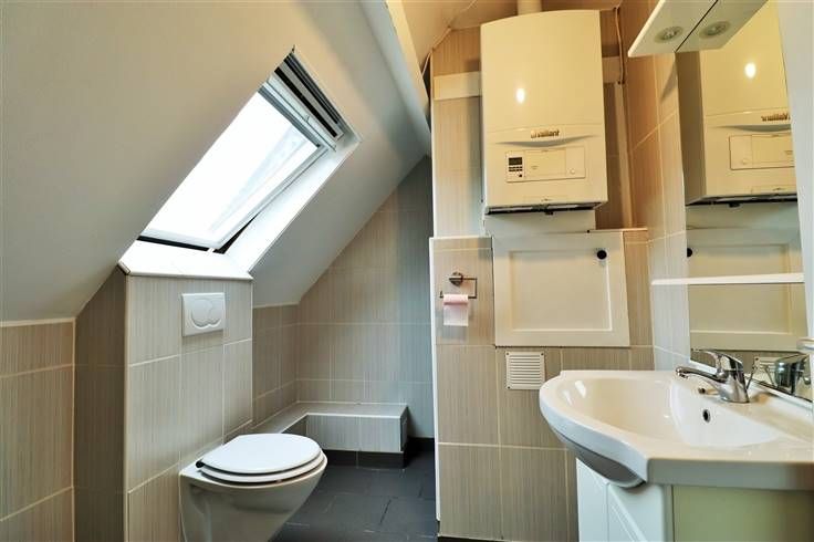 Hall d'entrée suivi d'un vaste living ouvert sur une cuisine entièrement équipée (four, taque, hotte, frigo, congélateur), une buanderie. Ensuite, vous trouverez un hall de nuit desservant 2 chambres dont l'une avec un grenier de rangement, une salle de douche, ainsi qu'une terrasse.