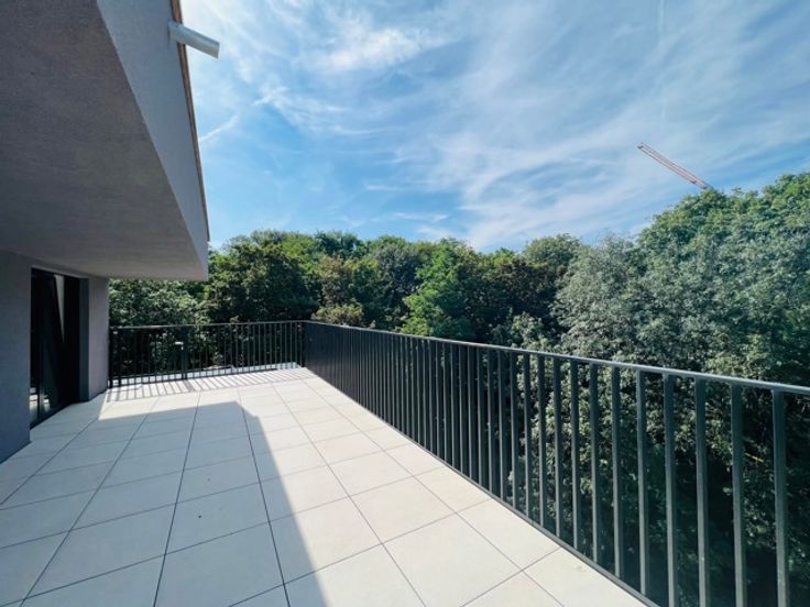 SCHAERBEEK - Eerste bewoning - Ideaal gelegen vlakbij Meiser en de NAVO, in een aangename buurt, prachtig PENTHOUSE (2Bedrooms/2Badrooms) van ± 103 m² met ZUIDWEST TERRAS en overdekte parkeerplaats. Op de 7ste verdieping van een nieuw gebouw, bestaat het uit een inkomhal met gastentoilet, lichte woonkamer van 40 m² met elegante superuitgeruste open keuken met kookeiland. 2 slaapkamers (14,2 en 9,1 m²), doucheruimte met toilet en badkamer. Aparte bijkeuken. Parkeerplaats beschikbaar (+€100/maand). Kelder. Lasten: 119 euro/maand provisie (afkoop regresverzekering, onderhoud gemeenschappelijke ruimtes) + jaarlijks onderhoud van dubbel stroomsysteem en warmtepomp. Lichtarmaturen en rails inbegrepen. Uitstekende energieprestaties, EPC A- (40,69kWh/m²/jaar). Ontdek het bij L&P!