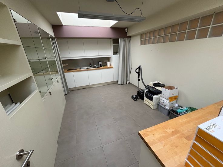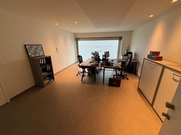 Kosten nog moeite werd gespaard om van dit gelijkvloers een functionele en aangename werkplek te maken. Alle ruimtes buiten het onthaal en de wachtruimte genieten van natuurlijke lichtinval. Er is centrale verwarming, telkens netjes ingewerkt en in elke ruimte is er airco en wateraansluiting.