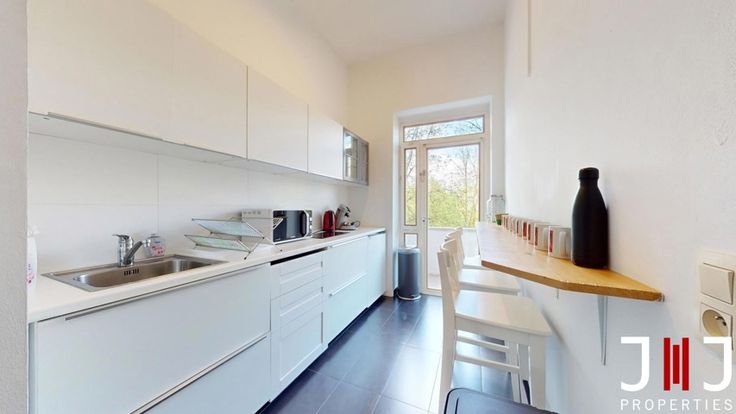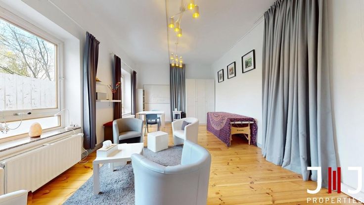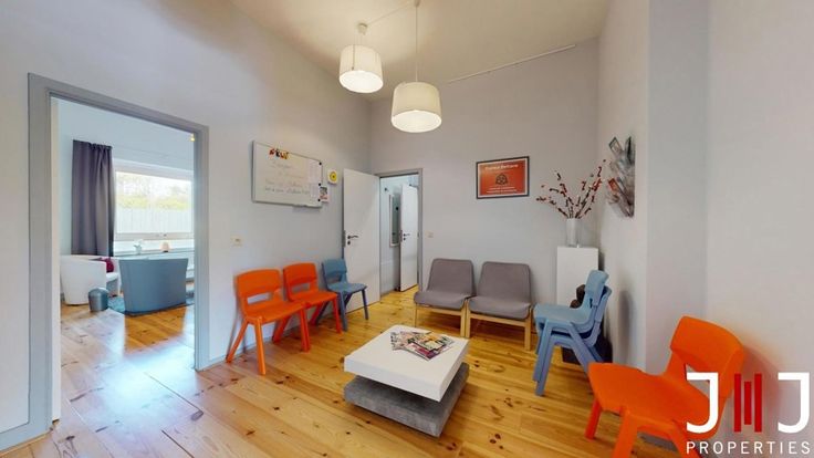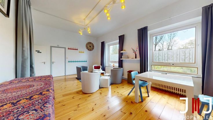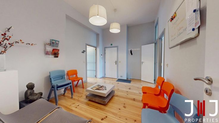 Located on the ground floor, the +/- 108m² space comprises a spacious waiting room with WC and storage space, a fully equipped kitchen and two beautiful rooms of 43 and 30m². The larger of these has a private entrance directly accessible to patients/clients. Each room has been fitted out with ceiling curtains to create more private spaces for therapists if required. 2 attractive cellars complete the ensemble.
