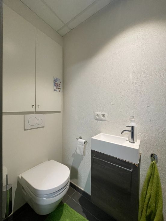 De degelijke uitvoering van de renovatie draagt bij aan de moderne uitstraling. Ook is er een warmtepomp aanwezig voor koeling en verwarming.