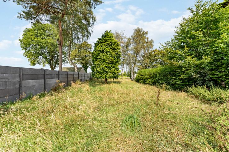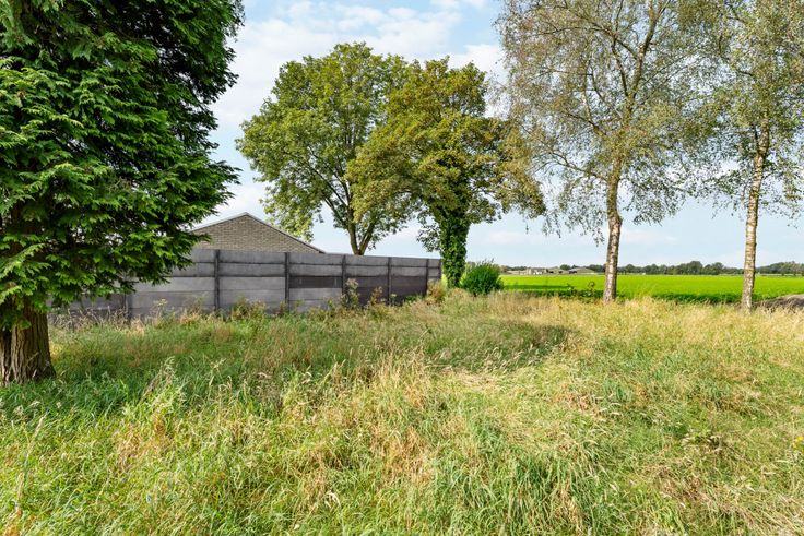 Tuin heeft achteraan zicht over open weilanden.