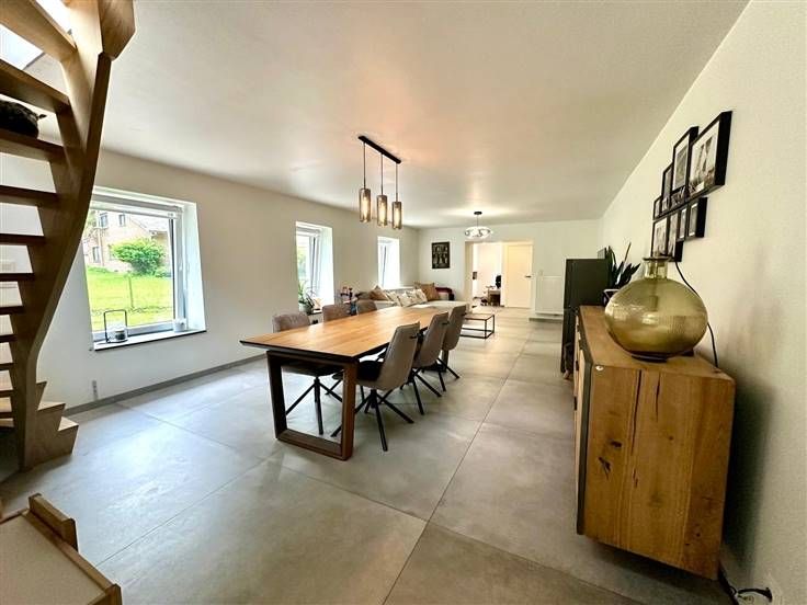 Sorry er is geen nederlandse vertaling beschikbaar. Express Immo Prestige vous propose de découvrir à Dinant sur 19 ares 28 ca cette maison en pierre du pays entièrement rénovée  avec goût et jouissant de tout le confort moderne ! Située  à proximité de toutes les commodités et à quelques minutes du centre de Dinant..  Elle est composée comme suit : Rez: hall d'entrée,vestiare avec meuble encastré Vanden Borre, buanderie, WC séparé, pièce de vie de 40m² , cuisine full équipée avec ilot central donnant accès direct sur la terrasse de 50 m² !! 1er étage: hall de nuit, salle de douche, 2 chambres de 11m² dont une avec terrasse privative.. 2eme étage : superbe suite parentale de 36 m².. Caractéristiques techniques : châssis pvc dv, chauffage central gaz propane , chaudière à condensation , mur en pierre isolé en laine minérale, poêle à pellet dans le salon, électricité conforme ,zone Natura 2000 à l’arrière..  Entièrement rénovée en 2021. PEB : B 155kwh/m².an Code unique : 20231102014907 RC 380 euros Vous souhaitez acquérir ce bien ?Alors ne tardez pas !  Ce bien vous est proposé à FO APD 359000 euros ( sous réserve d'acceptation du propriétaire.)  Contactez votre agence Express Immo Prestige
