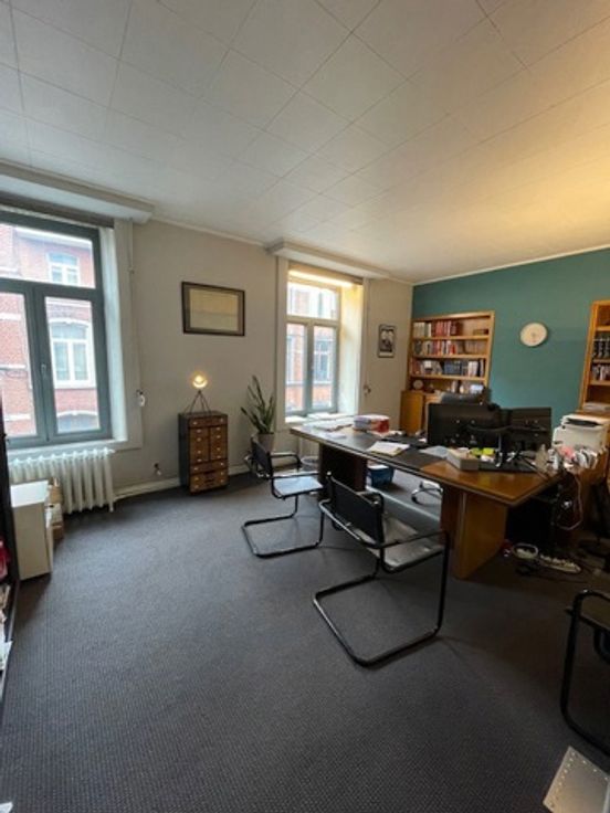 Immeuble de caractère idéalement situé au coeur de Charleroi: possibilités multiples Maison de maître lumineuse avec terrasse et jardin convenant pour une famille nombreuse: - Rez-de-chaussée: Hall d'entrée, pièces en enfilade (53,61 m2) se composant d'un bureau (côté rue), d'une salle à manger et d'un living donnant sur le jardin (156 m2). Cuisine avec possibilité d'extension, le tout donnant sur le jardin. Wc séparé, pièce de rangement (buanderie) et garage avec porte électrique. - Premier étage: 4 chambres (16,02 m2; 17,59 m2; 18,27 m2, 23,87 m2), une salle de bain (double évier, baignoire), un wc séparé. - Deuxième étage: 3 chambres (12,15 m2; 13,08 m2; 13,30 m2), salle de bain (évier, douche), un wc séparé. - Grenier: Accessible par un escalier fixe. Utilisé actuellement comme espace de rangement mais peut être aménagé. Immeuble actuellement utilisé à usage de bureaux: - Rez-de-chaussée: Salle de réunion, très grand bureau donnant sur le jardin, secrétariat, pièce d'archives, cuisine, wc séparé, garage. - Entre-sol: Salle d'attente - Premier étage: 4 bureaux, wc séparé. - Deuxième étage: 3 bureaux, wc séparé, salle d'archives - Grenier: Accessible par un escalier fixe Rangement Possibilité d'aménager l'immeuble pour une collocation (université à 1,4 Km) Caves sous le corps de logis, citerne d'eau, chaudière au gaz de ville. Double vitrage aluminium à l'avant, double vitrage PVC à l'arrière. Installation électrique à mettre aux normes. PEB E (provisoire en attente