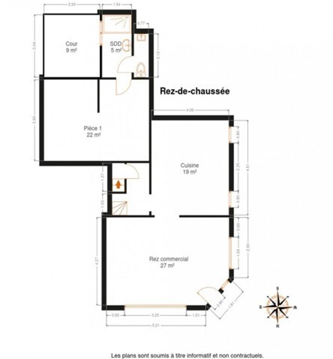 - Rez-de-chaussée : un espace commercial accueillant, une cuisine, une pièce polyvalente pouvant servir de bureau, de débarras ou de stockage, ainsi qu’une salle de douche et un WC séparé.