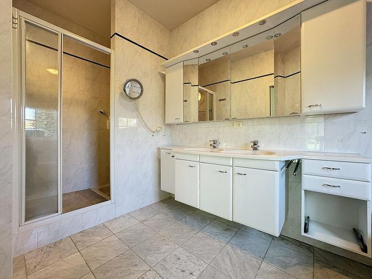 Cette somptueuse villa de standing des années 2000 vous séduira par son emplacement privilégié et ses prestations haut de gamme. Nichée sur un terrain de ± 16a, elle offre des volumes généreux et un agencement optimisé, comprenant un espace professionnel, une partie «maison» et un appartement indépendant de 2 chambres. L'ensemble est facilement accessible via un ascenseur. Au rez-de-jardin, découvrez un vaste séjour lumineux de ± 65m², idéal pour vos réceptions, jouxtant une cuisine équipée de ± 14m² et son office de ± 5m². Une superbe suite parentale avec une chambre de ± 13,5m², une SDB de ± 8,5m² et un dressing de ± 7m² complètent ce niveau. À l'étage, 2 grandes chambres avec leurs SDB offrent un espace confortable pour toute la famille. Un appartement indépendant, composé d'un grand living, d'une cuisine équipée, de 2chambres et d'une SDB, complète ce niveau, idéal pour des invités ou une location. À l'extérieur, vous pourrez profiter d'un magnifique jardin parfaitement orienté avec une terrasse équipée d'une tente solaire et un charmant abri de jardin. Le rez-de-chaussée abrite une cave à vin, une buanderie, un bureau et un spacieux garage pour deux voitures de ± 40m². Une entrée indépendante vous mène à un espace professionnel, idéal pour une activité libérale, avec salle d’attente, toilette séparée et bureau de ± 25m².