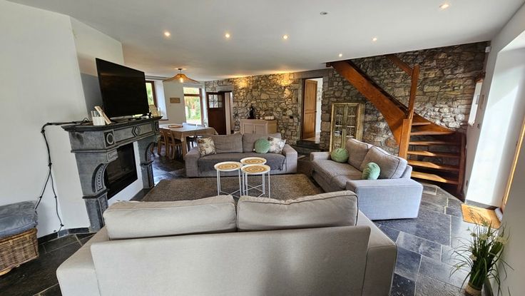 ZELDZAME KANS! Genesteld in het hart van het gehucht Hayen, een typisch dorp in kalkstenen brokken van Condroz, omringd door uitzonderlijke landschappen, op een steenworp afstand van het geklasseerde terrein van Trixhe Nollet, presenteren we u deze uitzonderlijke karaktervolle woning, een echte parel die onder geen beding mag worden gemist! Deze ruime boerderij biedt u de charme van vroeger met zijn prachtige zichtbare stenen, houten balken, blauwe stenen vloeren, gezellige ruimtes en alle comfort van vandaag! Op de begane grond bestaat het uit een inkomhal met een apart toilet en wastafel, een enorme leefruimte (woonkamer en 2 eetkamers) met toegang tot twee terrassen en een overdekt terras met een jacuzzi, evenals de prachtige beboste tuin met een vrij uitzicht op het platteland, een tweede woonkamer, een ingerichte keuken, een speelkamer of kantoor met opbergruimte en een doucheruimte met een wasruimte. Op de eerste verdieping zijn er 5 ruime slaapkamers, een apart toilet, een doucheruimte (inloopdouche, toilet, wastafel met kast), een prachtige badkamer (vrijstaand bad, dubbele wastafel met kast) en een kleedkamer. Diversen: twee ruime zolders, twee grote bijgebouwen die op 3 niveaus kunnen worden omgebouwd: 150 en 105 vierkante meter (voormalige schuren), een garage, 20 fotovoltaïsche panelen, houtkachel en een kelder. Mogelijkheid van een vrij beroep met een aparte ingang! Wacht niet, kom deze uitzonderlijke woning ontdekken door contact met ons op te nemen op 04/380.00