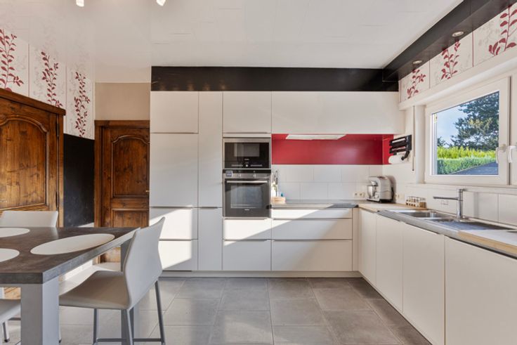 Leemans immobiliën biedt u deze villa aan op een toplocatie in Dilbeek.Door de centrale ligging van de woning zijn alle faciliteiten zoals winkels, openbaar vervoer, invalswegen, scholen en sportinfrastructuur zeer nabij.Vooraan de woning is er een oprit waar 3 wagens kunnen parkeren alsook een ruime garage voor 2 wagens. De woning is als volgt ingedeeld: inkomhal met wc, vestiare, garage voor 2 wagens, een leefruimte met veel lichtinval die toegang geeft tot de veranda.De keuken is volledig geïnstalleerd en vernieuwd in 2011 en beschikt over alle nodige toestellen.aansluitend aan de keuken is er ook een berging voorzien.Vanuit de keuken en de veranda heeft men toegang tot het terras en de tuin. Via de inkomhal is er een trap naar de verdieping waar er 4 slaapkamers zijn, apart wc en 2 badkamers waarvan 1 met douche en lavabo en de andere badkamer heeft 2 lavabo's en een ligbad. De tuin is volledig aangelegd en heeft 2 terrassen waar het heerlijk vertoeven is op zonnige dagen.Ook is er berging en tuinhuis aanwezig.Men kan de tuin langs beide kanten van de woning betreden. Troeven van deze woning zijn: ligging-gunstig EPC Mits wat opfrissingswerken kan je van deze woning een topper maken! Graag meer informatie of een persoonlijke rondleiding:immo@kantoorleemans.be of 02/306.90.00