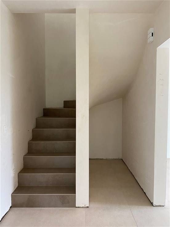De inkomhal met gastentoilet zal voorzien worden met een ingemaakte vestiairekast. De riante leefruimte geeft dankzij de raamwand toegang tot het terras en aangelegde tuin met prachtig zicht op het groen. De royale open keuken met keukeneiland is voorzien van alle nodige toestellen: kookplaat met dampkap, oven, microgolfoven, vaatwasmachine, koelkast. Verder is nog een wasplaats in combinatie met een berging aanwezig. Op het gelijkvloers is een bureauruimte die eveneens dienst kan doen als een eerste volwaardige slaapkamer. Op de bovenverdieping zijn er 3 grote slaapkamers en een badkamer met inloopdouche en dubbele lavabo alsook een apart toilet. Boven is er ook nog een berging voorzien in combinatie met technische ruimte.