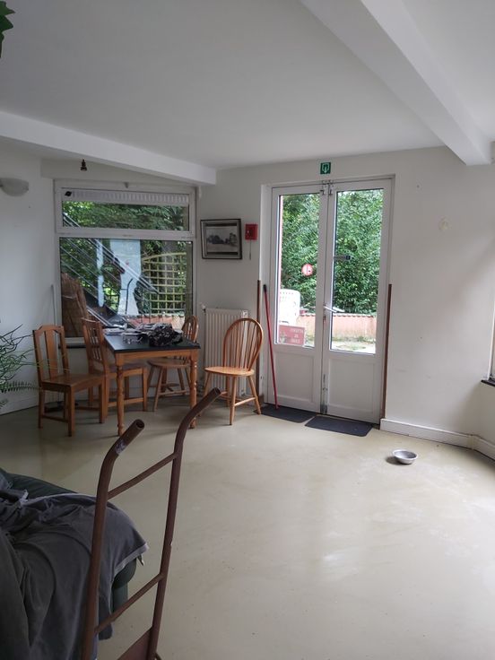 un espace de vente: 58.95 m2 ouvrant vers le jardin,accès vers un espace administratif et les ateliers arrière, suite en enfilade 79.07 m2.