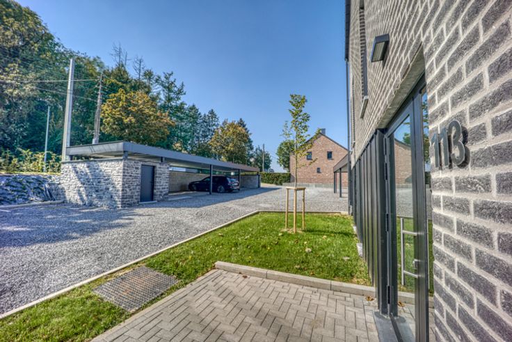 PICARD immo vous propose dans la charmante Résidence « Les verts Plateaux » cet appartement neuf de standing situé au rez-de-Jardin, doté d'une superficie de 139m² ( Surface Plancher Chauffée), d'une belle terrasse couverte et d'un jardin privatif. Cette Résidence aux dimensions "humaines" se démarque grâce à une situation privilégiée, facile d'accès, offrant un magnifique cadre verdoyant avec vue dégagée sur la campagne et proximité des grands axes. L'architecture moderne et réfléchie offre aux occupants des appartements lumineux disposant de matériaux de qualité, couplés à une excellente isolation acoustique et thermique (PEB A) - chauffage sol - chaudière gaz Vaillant - ventilation simple flux - équipé de panneaux photovoltaïques (4x415WC ). A noter : vaste living de 40m², 3 chambres, + 1 bureau pour profession indépendante, Pack finition d'une valeur 6000€HTVA inclus (peintures + éclairages), achat d'un carport - parking en supplément. Quotités dans l’immeuble : 1.042/10.000èmes. Prix de vente : 335.000€ HTVA. disponible à l'acte Dossier de vente complet, visite virtuelle et renseignements : www.picardimmo.be - 084/468.400