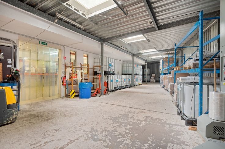 Met een oppervlakte van 715m² aan magazijn biedt het pand ruime opslagmogelijkheden.
