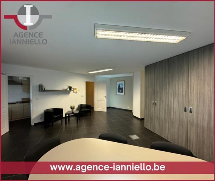 Au rez de chaussée d'un des immeuble les plus emblématiques de La Louvière, jouissant d'une exposition idéale, nous vous proposons ce superbe et spacieux appartement de plus de 100 M². Situé sur axe très fréquenté, votre implantation professionnelle ne pourra trouver mieux en terme de visibilité. Cet appartement est composé d'un hall d'entrée, d'une grande pièce dévolue idéalement à l'aménagement d'une zone d'accueil et d'une salle d'attente, d'une cuisine équipée et d'un hall qui distribue deux bureaux aux dimensions généreuses ainsi qu'une buanderie et une SDB. Une cave, au sous sol, vient compléter la surface disponible. Les aménagements et finitions intérieures sont remarquables. Citons, entre autres, une porte blindée, des placards sur mesure dans les pièces "working", un ensemble de stores, un réseau DATA. Niveau sécurité, le contrôle d'accès de la résidence est assuré par un sas d'entrée et des badges de reconnaissance. L'ensemble de ces caractéristiques font de ce bien l'appartement idéal l'établissement d'un bureau ou l'exercice d'une profession indépendante. Possibilité d'acquérir des emplacements parking intérieurs privatisés. INFORMATIONS - VISITES : 0477/39.64.99 - geri@agence-ianniello.be