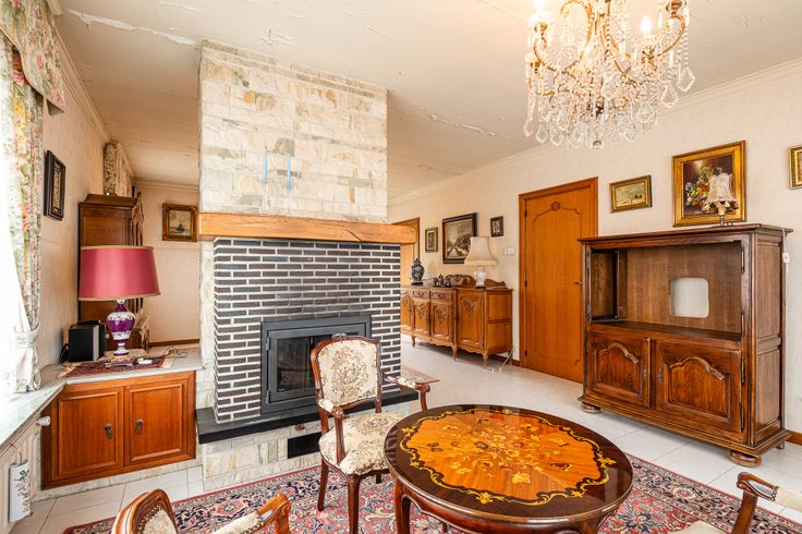Verwarming: mazout + houtkachel in living