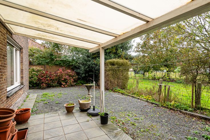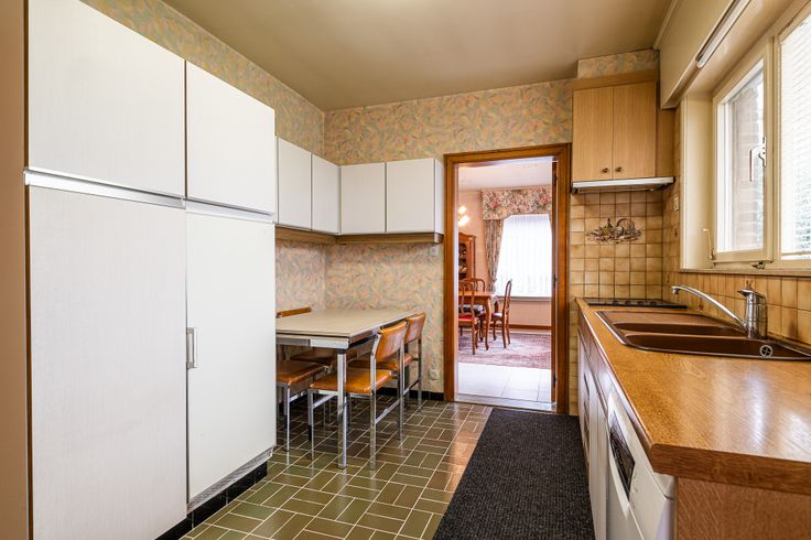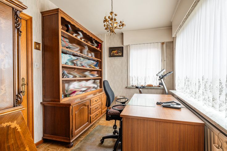 Via de inkomhal kom je terecht in de ruime en lichtrijke living. Verder, is er ook een bureauruimte terug te vinden. De keuken bevindt zich achteraan de woning en heeft zicht op de tuin met bijhorend terras.