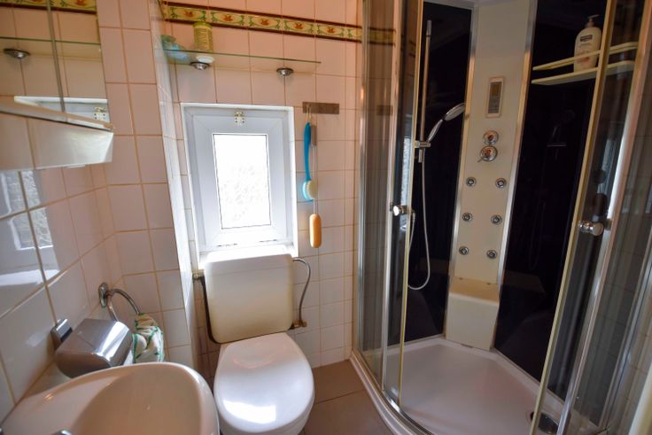 Gewerkt in het magazijn of tuin? Op het gelijkvloers is er een 1ste badkamer met douche, wastafel en toilet.