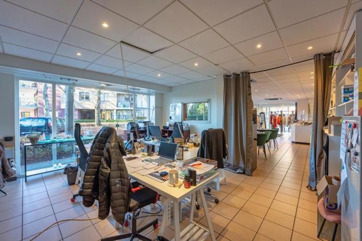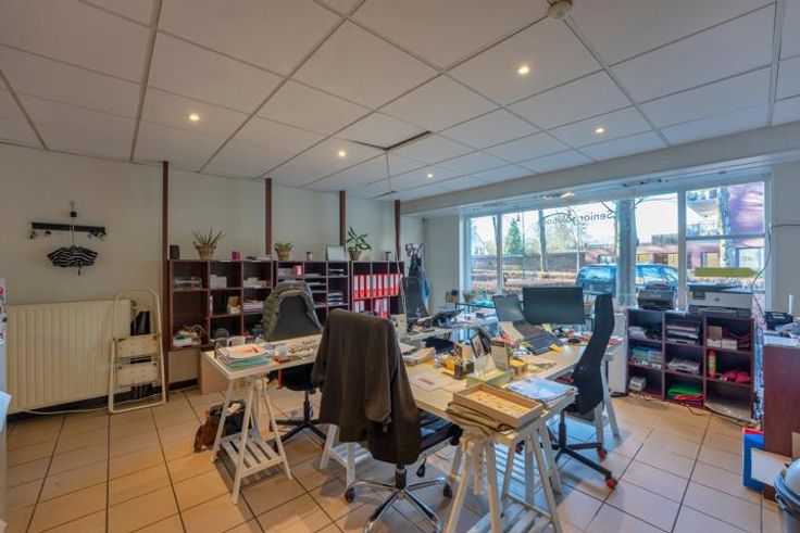 "Hoek" handelsruimte - kantoor van 100 m² met apart magazijn van 42m².