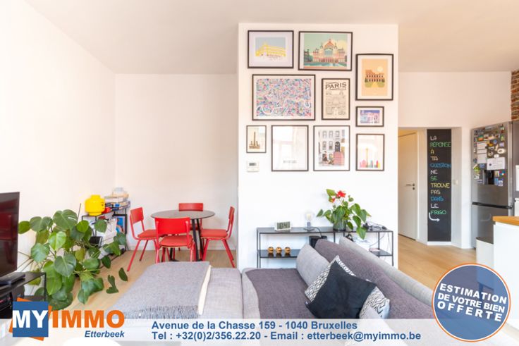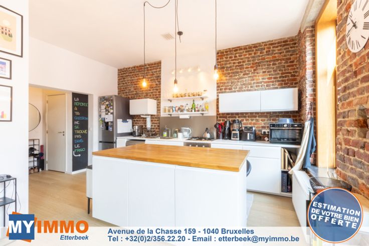 Duchesse de Brabant - MYIMMO Etterbeek à le plaisir de vous présenter en exclusivité un superbe loft de 2 chambres, d'une superficie nette de ± 70 m², situé au 2ème étage d'une ancienne usine (Brasserie Carlier). Ce loft se compose comme suit : un hall d'entrée avec espace de rangement et vidéophonie, lumineux séjour de ± 30 m² avec cuisine ouverte super-équipée, buanderie, 2 chambres de respectivement 11 et 9 m² et salle de douche comprenant : douche à l'Italienne, meuble vasque et wc suspendu. Espaces communs : Local vélos, local poubelle et jardin commun. Caractéristiques techniques : PEB "C", chaudière individuelle au gaz à condensation, thermostat d'ambiance, vannes thermostatique, électricité conforme jusqu'en 2033, double vitrage bois. Charges : 65€/mois (charges communes et fond de réserve) - Pour plus d'informations ou pour organiser une visite, contactez-nous à etterbeek@myimmo.be ou au 02/356.22.20.
