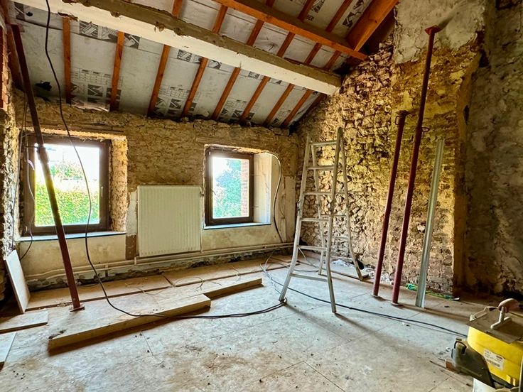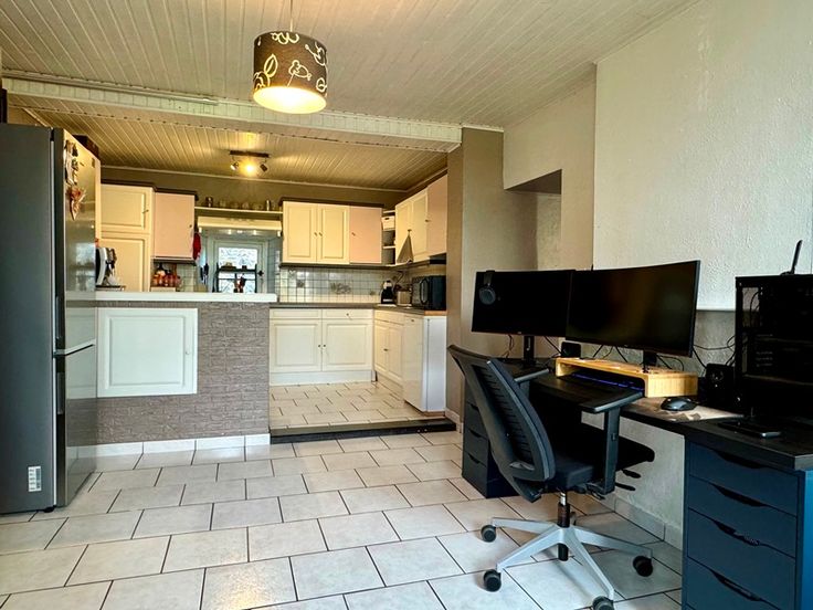 Belle maison saine de 150m² nets (hors garages et caves), comprenant actuellement 1 chambre (possibilité 3 après travaux), caves, garages, terrasse et jardin. Budget travaux à prévoir afin de terminer les 2 dernières chambres. La maison est située au calme et donne sur 2 rues (rue Froide et rue les Tris).