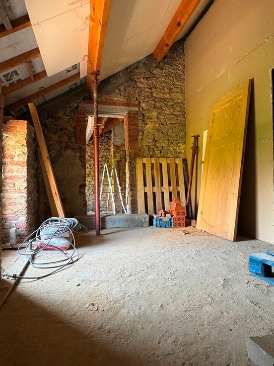 A l’étage: hall de nuit de 9m², coin dressing de 11m², 1 chambre de 12m², hall de nuit et 2 chambres à parachever de 17m² et 12m².