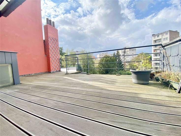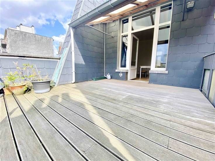 Omschrijving: Gelegen in Vorst, op een steenworp afstand van ' l'altitude 100 ', dichtbij openbaar vervoer, restaurant, winkels. Je kunt letterlijk alles te voet doen. Dit ruime duplex penthouse van 145m² woonoppervlak zal u verleiden door zijn helderheid en de aanwezigheid van zijn groot terras met uitzicht op de tuinen. De woning is gelegen op de tweede en derde verdieping in een bijzonder net herenhuis. Bestaande uit: Eerste niveau: woonkamer en eetkamer bestaande uit twee aangrenzende kamers met hoge plafonds. Super uitgeruste open keuken en directe toegang tot het terras op het westen gelegen van +/- 31m2. Een apart kantoor van +/- 5m2. Gastentoilet met doucheruimte. Tweede niveau: Twee grote slaapkamers met elk ingebouwde kasten, waarvan één met een mezzanine. Badkamer, voorzien van ligbad, dubbele wastafel en toilet. Kelder en fietsenstalling. Geen gemeenschappelijke kosten, de meters zijn individueel.