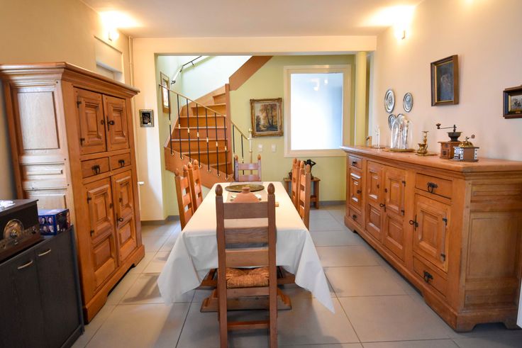 De houten trap brengt je naar de eerste verdieping met