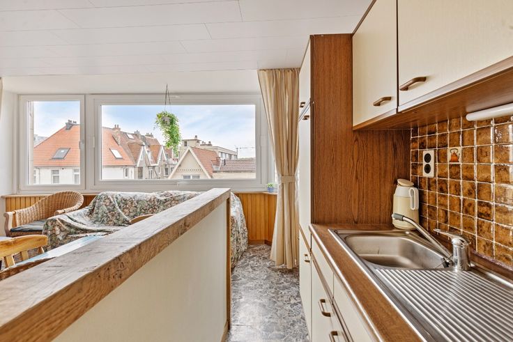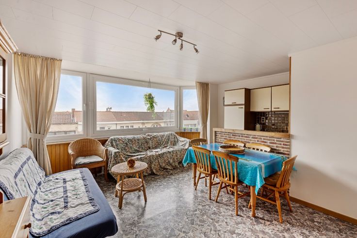 De Panne: Gezellig te renoveren appartement op een steenworp van zee en centrum Ben je op zoek naar een charmant appartement vlakbij de zee en het centrum? Dan is dit te renoveren 1-slaapkamer appartement in de residentie Marie-José precies wat je zoekt! Gelegen op de 3de verdieping van de residentie, geniet dit appartement van een ideale ligging nabij zowel het strand als het bruisende stadscentrum. Indeling: Ruime en lichtrijke woonkamer met half-open keuken en aparte slaapkamer met toegang tot een badkamer met toilet.